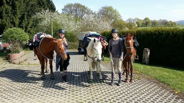 April - Kimberly und Kelly waren auf ihrem ersten Wanderritt bei uns zu Gast. Mit ihren 3 Pferden sind sie direkt von zu Hause los geritten und starten nun entspannt und gut gestärkt in den Tag. Die nächste Station ist Karseifen in Wissen, danach geht es weiter zu Sophienthal in Hattert und dann wieder nach Hause. Danke an Euch, dass ihr bei uns wart und habt einen entspannten Ritt!