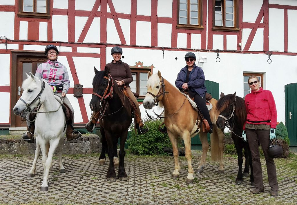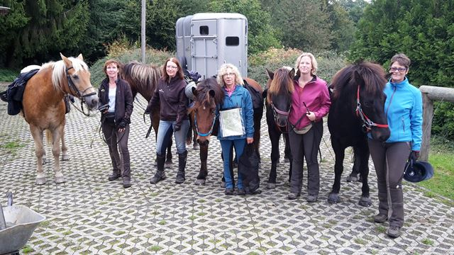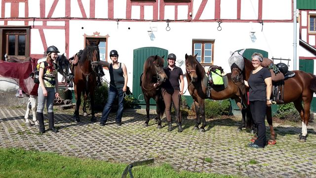 September - die Rheinländerinnen waren wieder zu Gast bei uns. Die fleißigen Isis und Florian, der Haflinger, der glaubt ein Islandpferd zu sein, haben die Gruppe auf Ihrer Tour "vom Nistertal ins Windecker Ländchen" fleißig von Station zu Station getragen. Wir danken den 5 Reiterinnen für ihren Aufenthalt bei uns!
