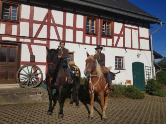 Mai 2019 - Danke an Herbert Assenmacher von Station 1 in Karseifen, der dieses Jahr seine große Tour mit Pferd und Hund durch den Westerwald bei uns gestartet hat. Ein schöner Abend mit lecker Essen und viel Austausch über unseren gemeinsamen Verein Westerwald zu Pferd und andere Pferdegeschichten haben uns die Zeit nicht lang werden lassen. Nun reitet er weiter nach Ropeland zu Familie Seiler und wir wünschen alles Liebe und Gute.
